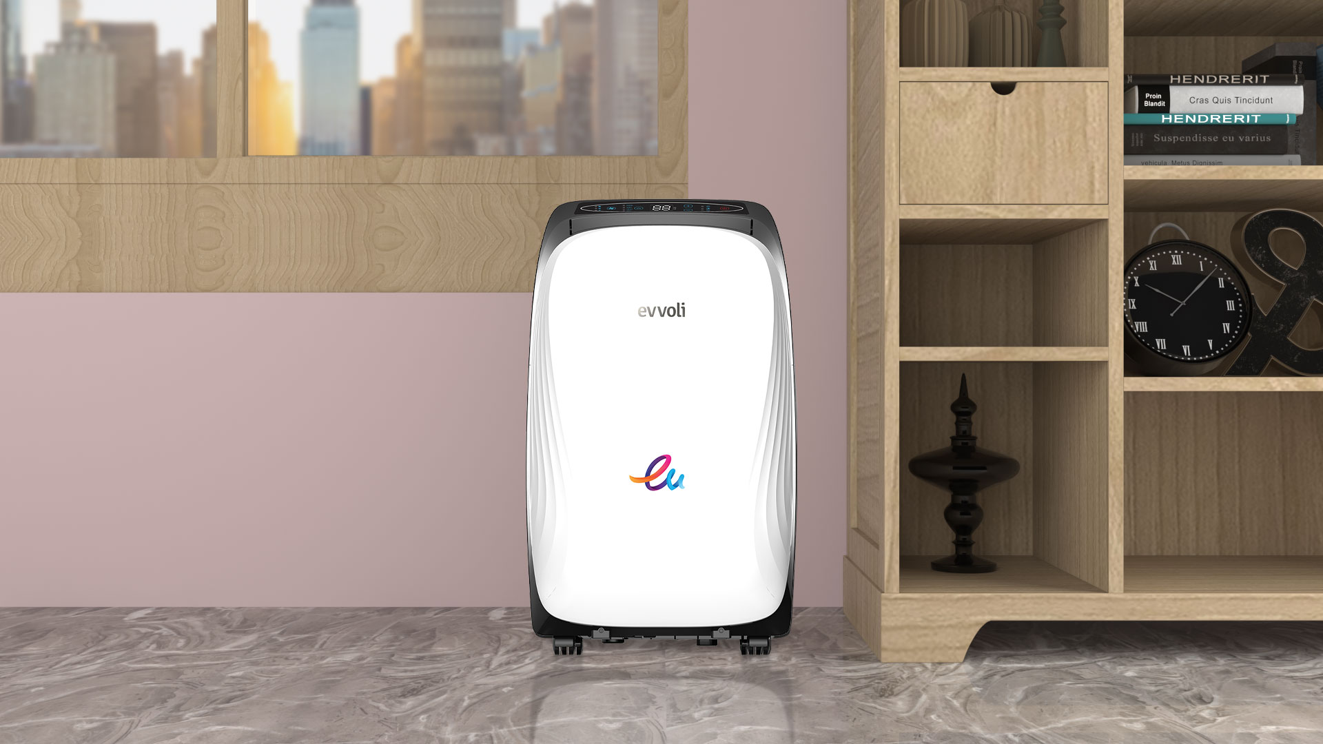 Introducing you the new generation of the portable ACs by the-Evvoli-evolved technology. The new portable conditioning system offers you cooling and heating in a limit-free manner. The portability and the lightweight (32kg) make it your intimate conditioning mate wherever you need her. The Omni-directional Caster offers you a borderless experience. The R410A gas and the ionizer system help improve the lung and breathing function and allergies are a thing of the past. You can control your air conditioner and move it easily; controlling with your smartphone, and moving it with the smart wheels.