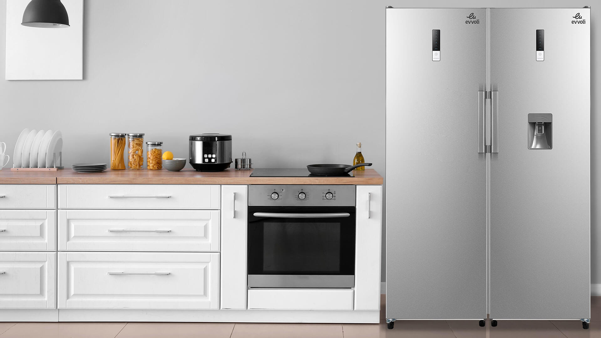 For your reference, Evvoli refrigerators refine your refrigeration experience. The new age tri-cooling system preserves meat and moisturizes fruits and vegetables for your family health and better nourishment. Our Italian engineering legacy presents a cutting edge solution for your everyday cooling and freezing. The minimal design coupled with robust pieces give you the desired capacity and convenience you’d ever expect from a side-by-side refrigerator. The Evvoli energy saving refrigerant saves not only electricity but also the environment. Cooler times are ahead with the quiet Evvoli refrigerator.